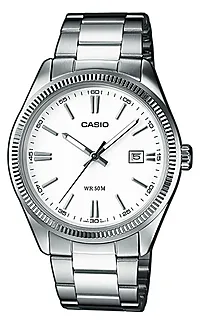Glass Mineral Urverk Kvarts (batteridrevet) Farge på skive Hvit Kassens bredde i mm 39 Materiale på klokke Stål Rem Stål Display/funksjonalitet Analog Vanntetthet 4 Leverandørens varenummer MTP-1302PD-7A1VEF EAN 4971850070351