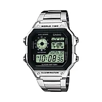 AE-1200WHD-1AVEF, kjent som “Casio World Time”, er en digital herreklokke med retroinspirert design og imponerende funksjonalitet. Med sin sølvfargede stållenke og detaljerte digitale skjerm kombinerer den klassisk Casio-stil med moderne brukervennlighet.
