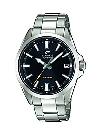 Glass Mineral Urverk Kvarts (batteridrevet) Farge på skive Sort Kassens bredde i mm 42 Materiale på klokke Stål Rem Stål Display/funksjonalitet Analog Vanntetthet 4 Leverandørens varenummer EFV-100D-1AVUEF EAN 4549526186417