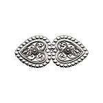 Hårspenne til bunad i 830 oksidert sølv med vakker hjerteform, perlekant og kruse i senter. Kan brukes til de fleste bunadene i landet eller til hverdag og fest.