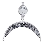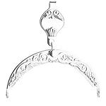 Veskelås til bunad i hvit sølvplett med tradisjonell dekor. Veskelåsen har også et graveringsfelt det du kan gravere inn navn, initialer eller dato. Veskelåsen festes på en veskestøl eller direkte på bunaden med en veskelåshempe. Bøylen er 10mm.