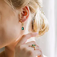 Disse iøynefallende øreringene er dekorert med grønn hydrotermisk smaragd og en glitrende diamant på 0,08 ct, som tilfører et luksuriøst preg.
