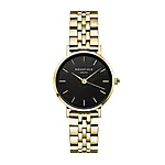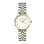 Denne klokken kombinerer minimalistisk eleganse med et moderne tonet uttrykk. Den kompakte kassen på 26 mm gir en diskré, men sofistikert tilstedeværelse på håndleddet. Lenken er laget av gull og sølvbelagt rustfritt stål, noe som gir modellen en luksuriøs, men samtidig allsidig karakter.