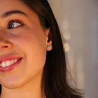 Fantastiske og klassiske rosett øredobber med en flott stor akvamarin sten i senter som er 0,27 ct og er omkranset av mindre stener og 30 Wesselton diamanter per øredobb.