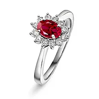 Elegant ring i 585 hvitt gull med rubin og diamanter