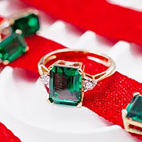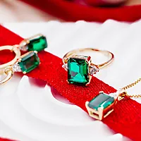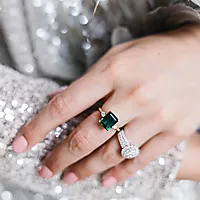 - Edelstener: Grønn hydrotermisk smaragd og diamanter (0,20 ct)