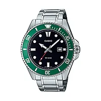 MDV-107D-3AVEF er en robust og sporty herreklokke inspirert av klassiske dykkerur. Med sin grønne urskive, stållenke og tydelige markeringer får du et stilig og funksjonelt uttrykk som passer både til hverdag og fritid.