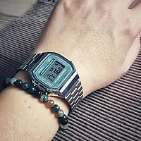 A168WA-3AYES er en ekte retroklassiker i sølv – et ikonisk design som aldri går av moten. Med sin karakteristiske digitale skjerm, slanke profil og sølvfargede stållenke er dette en unisexklokke som løfter både hverdagsantrekk og mer pyntede looks.