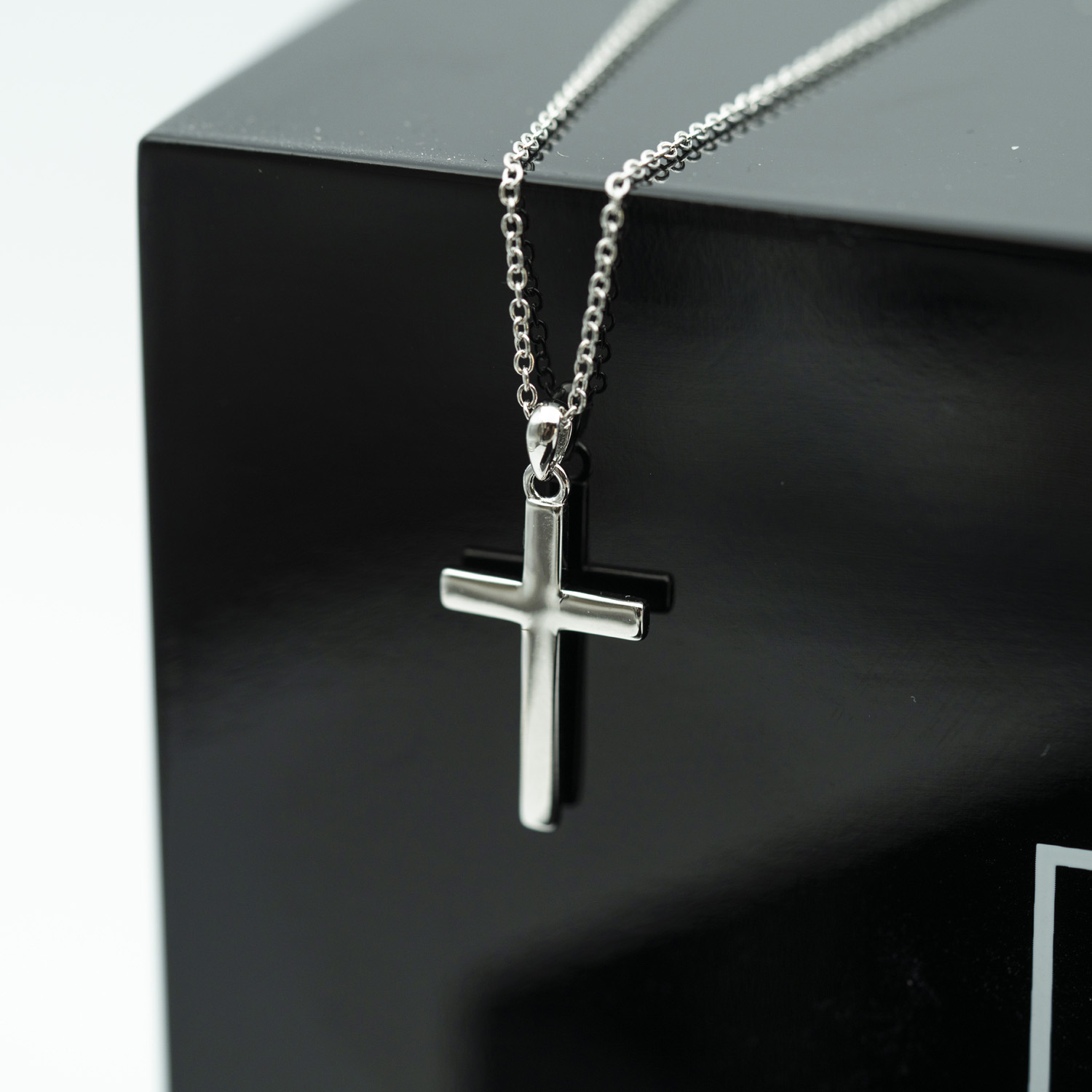 Klassisk og tidløst kors til herre i 925 sølv, designet for å gi et elegant uttrykk. Anhenget måler 28 mm i høyden og 13 mm i bredden, og henges fra et solid ankerkjede på 50 cm, som gir en perfekt lengde for daglig bruk eller spesielle anledninger.