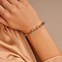 Lekkert chain armbånd i tofarget 925 sølv. Armbåndet har en elegant lås dekorert med zirkonia rundt hele låsen. Dette armbåndet kan brukes både til hverdag og til fest og skaper et ekstra blikkfang på håndleddet. Armbåndet har en lengde på 18 cm.