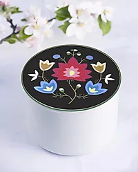 Det indre skrinet er lufttett og i tre etasjer. Sølvet holder seg blankt og fint i lang tid og rommer alle smykkene til din bunad. Det er viktig at du lar det indre skrinet stå i porselensskrinet slik at det ikke kommer lys til.
