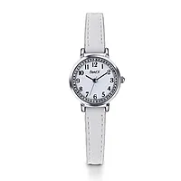 Gi barnet en enkel og praktisk klokke som både er pen og lett å bruke: denne barneklokken med hvit rem og skive er ideell for barn som vil lære seg klokka.