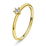 Vida er en norskprodusert og tidløs enstensserie, kjent for sitt elegante uttrykk og fokus på kvalitet. Denne vakre diamantringen er laget i 585 gult gull, og kommer med en sofistikert seksklørsfatning, designet for å løfte frem diamantens glans og maksimere lysspillet.