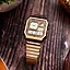 Klokken tilbyr praktiske funksjoner som alarm, stoppeklokke, automatisk kalender og LED-baklys, slik at du får både stil og funksjonalitet i ett. De varme gulldetaljene gir et eksklusivt uttrykk, mens det nostalgiske Casio-designet gjør modellen til et populært valg for retro-entusiaster.
