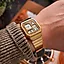 A130WEG-9AEF er en moderne tolkning av Casios ikoniske retrostil – denne gangen i en elegant gullfinish med et tidløst, geometrisk design. Den klassiske digitale skjermen kombineres med en slank og komfortabel metalllenke, noe som gjør dette til en unisexklokke som passer perfekt både til hverdag og til mer stilfulle anledninger.