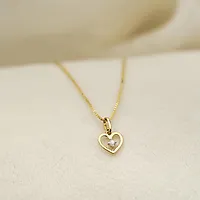 Smykke til barn i 585 gult gull med et klassisk hjerte og en diamant i senter på 0,03 ct. Leveres med et 38 cm langt veneziansk kjede i forgylt sølv.