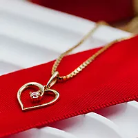 Hjerteanheng i 585 gult gull med en glitrende zirkonia i senter av hjerte. Gi det til noen du er glad i eller unn deg selv i gave.