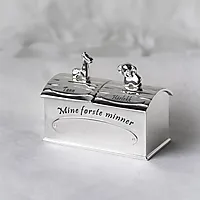 Skrin til første tann og hårlokk i forsølvet sink med sjiraff og elefant, og et graveringsplate du kan gravere navn, initialer, dato eller det du måtte ønske