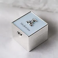 Bevar et av de kjæreste barndomsminnene med dette søte minneskrinet til “Min første tann” i elegant lyseblå farge. Dette fine skrinet gir deg et trygt og verdig sted å oppbevare den første melketannen — et øyeblikk mange ønsker å ta vare på for alltid.