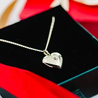 Medaljong i 925 forgylt sølv med en glitrende ledestjerne i zirkonia foran. Medaljongen kan åpnes og har plass til et lite bilde. Et smykke fylt med minner og betydning. Leveres med et anker kjede i forgylt sølv på 45 cm, og 1,2 mm bredt.