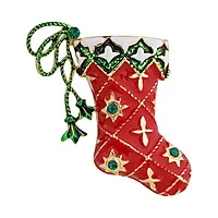 Sjarmerende julenål med en julesokk, dekorert med glitrende glasstener. Dette festlige tilbehøret er perfekt for å gi julekjolen et ekstra preg av julestemning!
