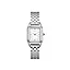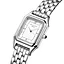 Ivy kombinerer delikat design med et klassisk og elegant uttrykk. Klokkens rektangulære urkasse (21 × 26 mm) i sølvbelagt farge gir et eksklusivt preg, mens den matte, hvite urskiven med dobbel sølvramme gir tidløs eleganse.