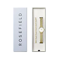 Dette elegante gave-settet kombinerer den klassiske Rosefield Small Edit White Gold-klokken med et matchende Hammered Chainlink-armbånd. Klokken har et kompakt, åttekantet urhus (19,5 × 24 mm) og en raffinert to-tonet lenke i gull og rhodium, noe som gir et stilig og tidløst uttrykk.