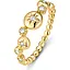 Denne statement-ringen har et særegent bånd dannet av uregelmessige, flate kuler med spredte stjerner av glitrende zirkonia som fanger lyset med en delikat gnist.Det moderne, men mystiske designet kombinerer geometrisk lekenhet med himmelske detaljer, noe som gjør den ideell for bruk som et frittstående statement eller sammen med flere ringer.
