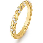 Gi hverdagsantrekket ditt litt glitter med denne forgylte sølvringen i tvinnet design og zirkonia stener. Du kan enkelt ta overgangen fra kontoret til en kveld ute med denne ringen som ikke sparer på glansen.